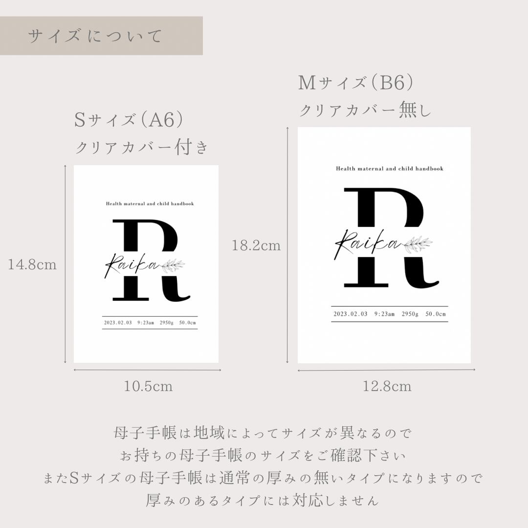 *中の手帳がはみ出ないよう少し大きめに作成しております。お手持ちの母子手帳に合わせてカットしてご使用下さい。