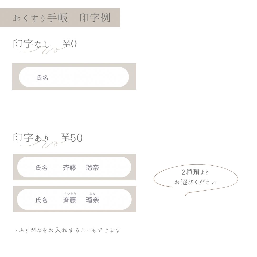 ⚫︎オプション : 母子手帳印字→+100円